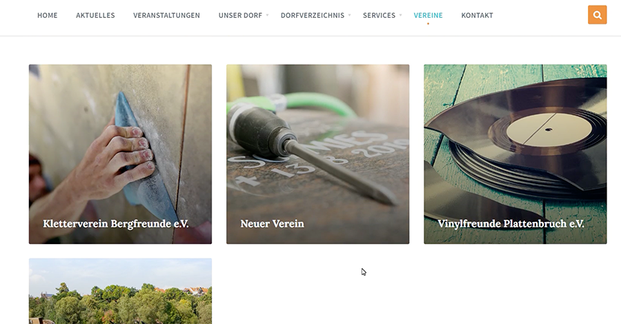 Wenn Du eine neue Seite als Vereinsseite angelegt hast, musst Du nicht weiter machen, damit diese unter dem Menupunkt Vereine auf der Dorfpage angezeigt wird. Dies geschieht dann automatisch.