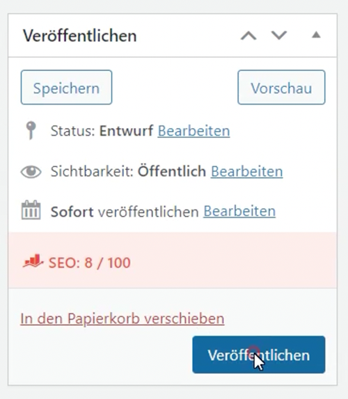 In der Spalte rechts kannst Du ein Beitragsbild aus der Mediathek wählen, oder ein neues Bild von der Festplatte hochladen.