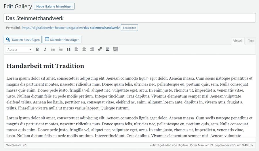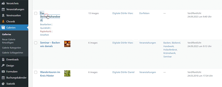 Du hast eine bestehende Galerie auf Deiner Dorfpage, die Du noch einmal bearbeiten möchtest.