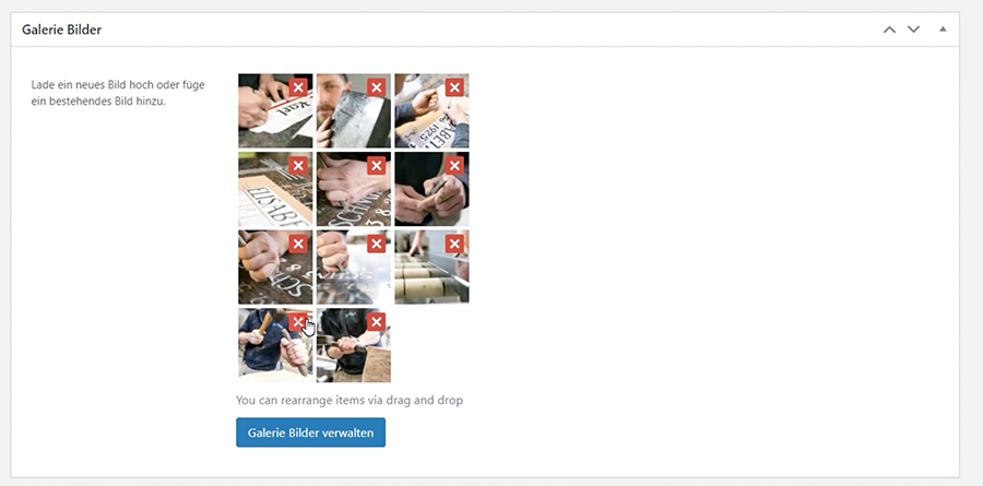 In der Vorschau der Galeriebilder kannst Du einzelne Bilder direkt löschen.