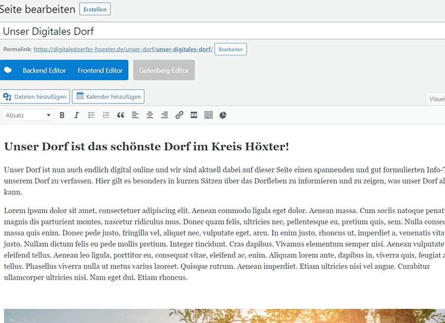 Andere Seiten und Beiträge darauf kannst Du dann ganz normal mit dem Editor bearbeiten.