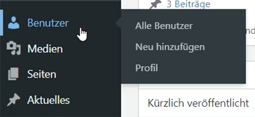 Wenn Du für die Dorfpage einen neuen Benutzer anlegen möchstes, dann klicke seitlich im Menu auf den Punkt Benutzer.