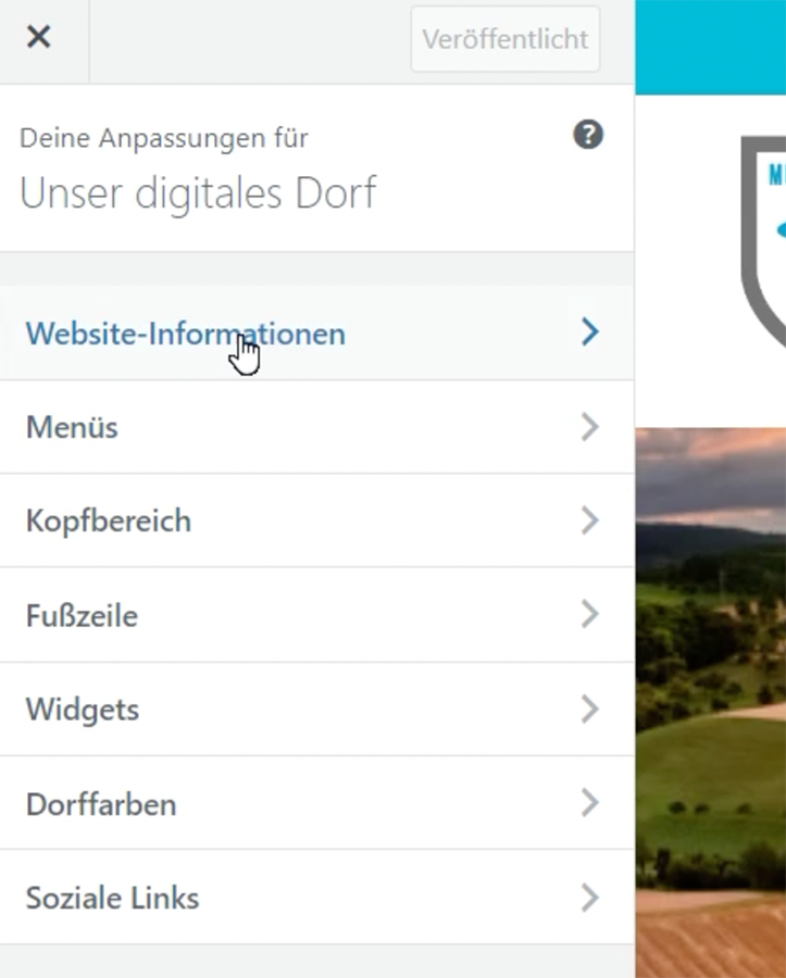 In der Oberfläche des Customizer klicke bitte aus den Punkt Website-Informationen