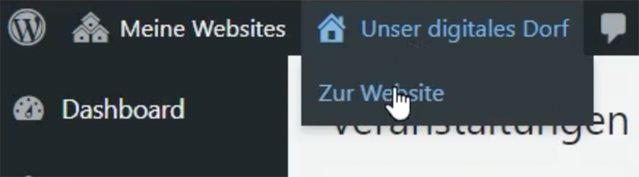 Wechsle über das Menu oben zur Ansicht der Dorfpage.