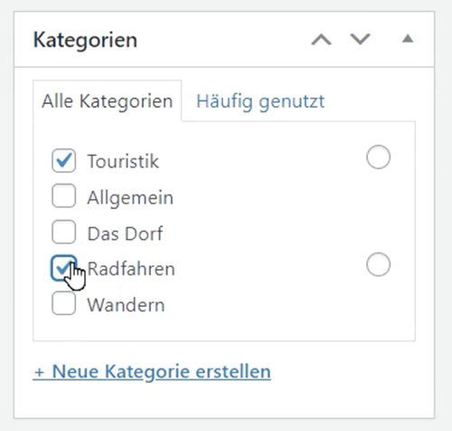 Jetzt wird diese Kategorie Radfahren in der Liste rechts mit aufgeführt.