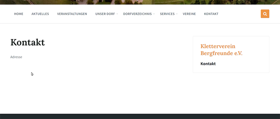 Im Frontend der Vereinsseite siehst Du nun rechts den weiteren Menupunkt direkt auf der Seite. Über ihn kannst Du nun zu der angelegten Unterseite gelangen.