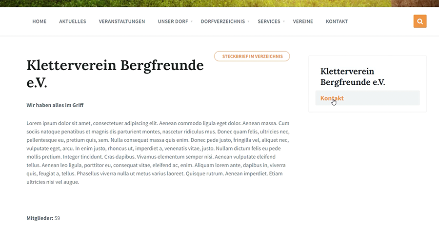 Wechsle nun über die Option Ansehen bei der Hauptseite des Vereins zum Frontend der Dorfpage.
